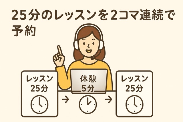 1回25分のレッスンを、2コマ連続で予約することもできます。